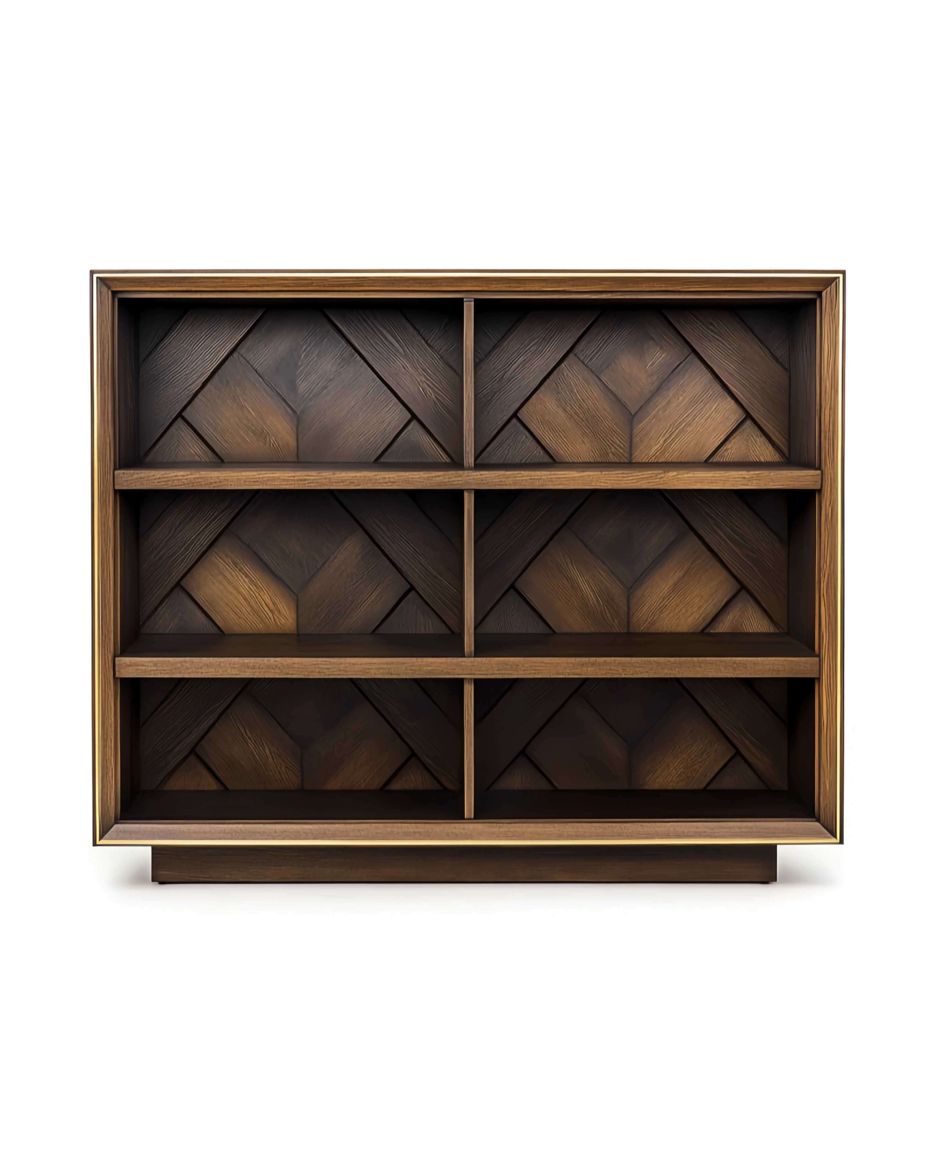 Cette bibliothèque en chêne foncé au style vintage apporte une touche de raffinement et de caractère à votre décoration intérieure. Son format équilibré et ses finitions soignées en font un meuble à la fois pratique et esthétique, idéal pour les amateurs de mobilier classique et élégant.